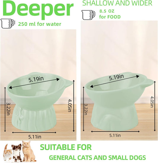 2Pcs Ceramic Elevated Cat Bowls, Extra Wide Raised Cat Bowls for Food and Water, Shallow Cat Food...